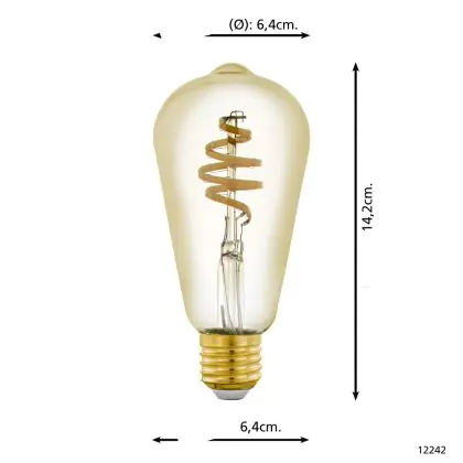Naast de kleurtemperatuur speelt het uiterlijk van de lamp een belangrijke rol. Ga je voor mat glas of liever helder/gekleurd glas, waardoor je het LED filament (de oranje kooldraad) goed kunt zien? Heb je ook al nagedacht over de vorm en grootte? Deze E27 lamp heeft als vorm: Edison. Ten slotte heb je bij ons een zeer ruime keus aan dimbare E27 LED lampen. Hierbij heb je een LED dimmer nodig. Wil je extra informatie over E27 LED? Lees dan onze blog: Hoe vind ik de juiste E27 lamp?
