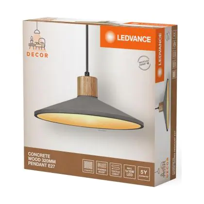 Beschrijving Ledvance Decor Beton/Staal/Hout Pendelarmatuur 320 Donker Grijs | Geschikt voor E27
