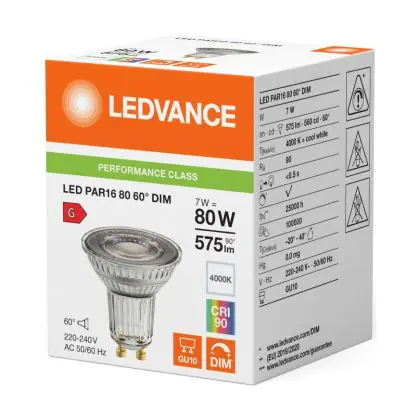 Beschrijving Ledvance LED PAR16 GU10 Reflector 7W 575lm 60D - 940 Koel Wit | Beste Kleurweergave - Dimbaar - Vervangt 80W