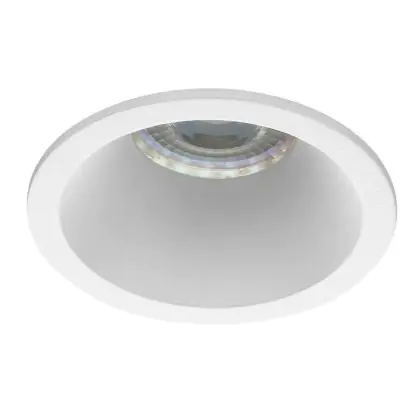 De plafondplaat van deze spot is erg dun, wat een mooie afwerking geeft na installatie. De aluminium behuizing in witte kleur geeft een strakke look, maar deze spot is ook in andere designs en kleuren verkrijgbaar. De spot is rond van vorm en smalle, strakke rand en hoeken om de lichtbron te accentueren. De lichtbron wordt diep in het design geplaatst.