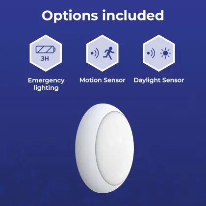 Beschrijving Noxion LED Bulkhead Pro V2 Wit 12/16/20W 2400lm - 830-840-865 CCT| 325mm - IP65 - Bewegings- en Lichtsensor - Nood 3H