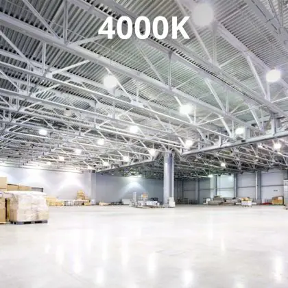 Deze LED High-bay bezit een enorme lichtopbrengst van 34000 lumen! Dit hoge aantal laat zien dat een armatuur zoals deze ook vanaf een grote hoogte nog steeds zijn werk doet. Hang je een High-bay armatuur zoals deze in een ruimte met lagere plafonds, dan is de hoeveelheid licht simpelweg te krachtig en te fel. Met als gevolg dat wanneer mensen in het licht kijken, ze direct worden verblind. Vanaf hoge plafonds (6 tot 14 meter) is dat een ander verhaal. Ook niet onbelangrijk om op te letten is de kleurtemperatuur. Deze is bij dit product: 4000K - 5200K - 6500K CCT. Twijfel je over de juiste kleurtemperatuur voor een grote oppervlakte? Kies dan voor koel wit (4000K). Deze lichtkleur heeft een natuurlijke tint en houdt werknemers in productie-omgevingen alert.