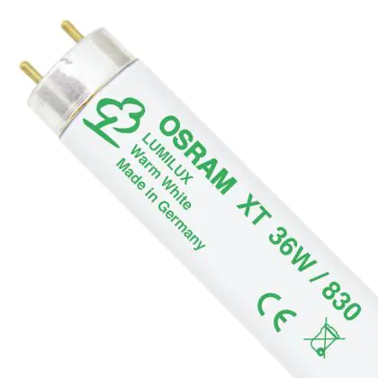 De LUMILUX XT T8 lampen hebben een langere standaardlevensduur, dus minder lampen voor afvalverwijdering. Deze lichtbronnen zijn de meest verkochte TL-buizen en er is voor iedere plaats wel een geschikte lamp te vinden.