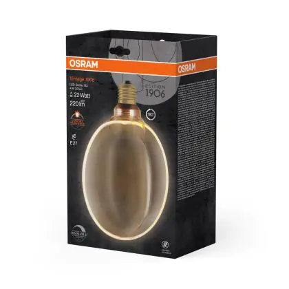 Beschrijving Osram Vintage 1906 LED E27 Globe Filament Goud 183mm 4W 220lm - 818 Zeer Warm Wit | Dimbaar - Vervangt 22W