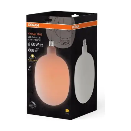 Beschrijving Osram Vintage 1906 LED E27 Special Filament Mat 7.3W 806lm - 827 Zeer Warm Wit | Dimbaar - Vervangt 60W