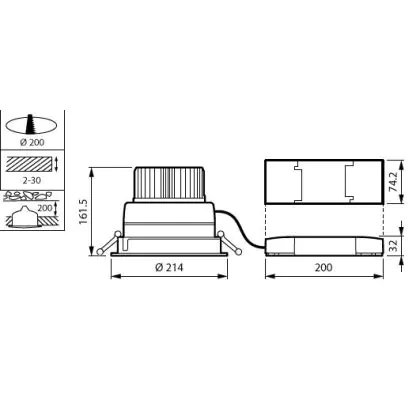 Beschrijving Philips LED Downlight LuxSpace Compact Lage hoogte DN570B VLC-E 52.8W 6200lm 80D - 830 Warm Wit | 214mm - Aluminium Reflector - Dali Dimbaar