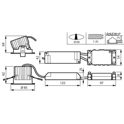 Beschrijving Philips LED Spot RS156B CoreLine Aluminium Wit 12.3W 1380lm 36D - 840 Koel Wit | 85mm - Zaagmaat 68mm - IP20/44 - Dali Dimbaar