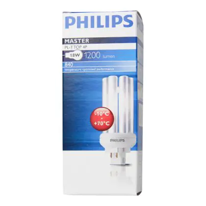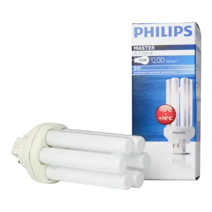 De Philips PL-T TOP 4P lampen onderscheiden zich doordat zij ontworpen zijn voor gebruik in koude of warme ruimtes. Door de GX24q-2 lampvoet, is de lamp eenvoudig te integreren in armaturen. Let er hierbij wel op het wattage. U kunt namelijk niet wisselen van wattage doordat de lengte van de lamp zal veranderen en tevens heeft u een ander voorschakelapparaat nodig. Daarbij heeft de lichtbron energielabel B. De levensduur is 13000 branduren. Als de lamp begint te knipperen en moeizaam opstart, is deze aan vervanging toe.